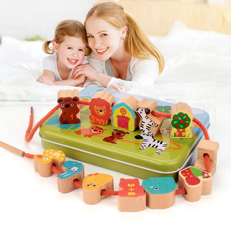 ORIGINAL Children Wear Beads Baby Educational GIRL'S Early Education String Wooden Toy Infant Threading Prod